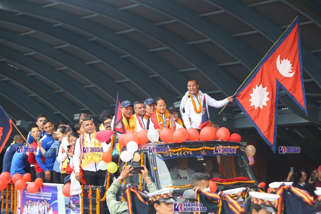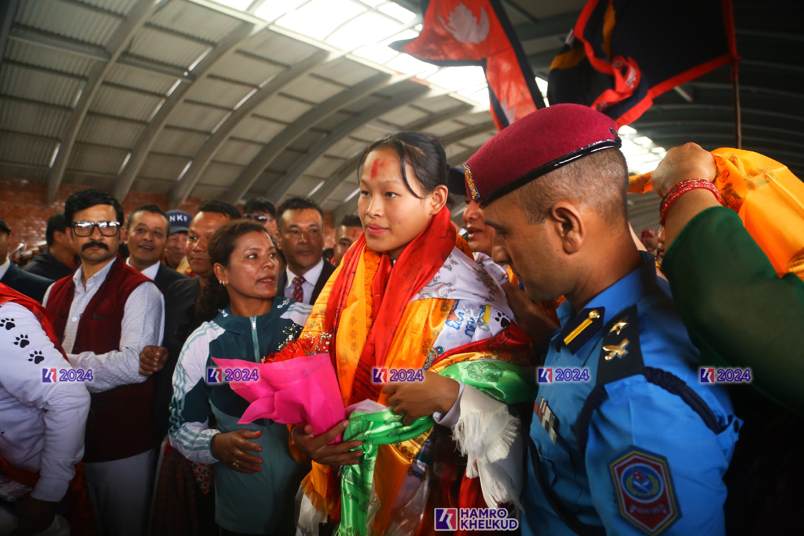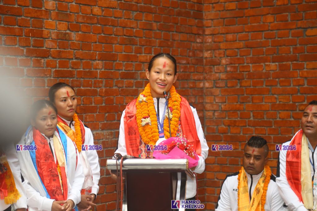 राष्ट्रिय खेलकुद परिषद् (राखेप) का सदस्य सचिव टंकलाल घिसिङ, कराते प्रशिक्षक, खेलाडी, पदाधिकारी , खेलप्रतिले एरिका सहित टोलीलाई विमानस्थलमा स्वागत गरेका थिए।