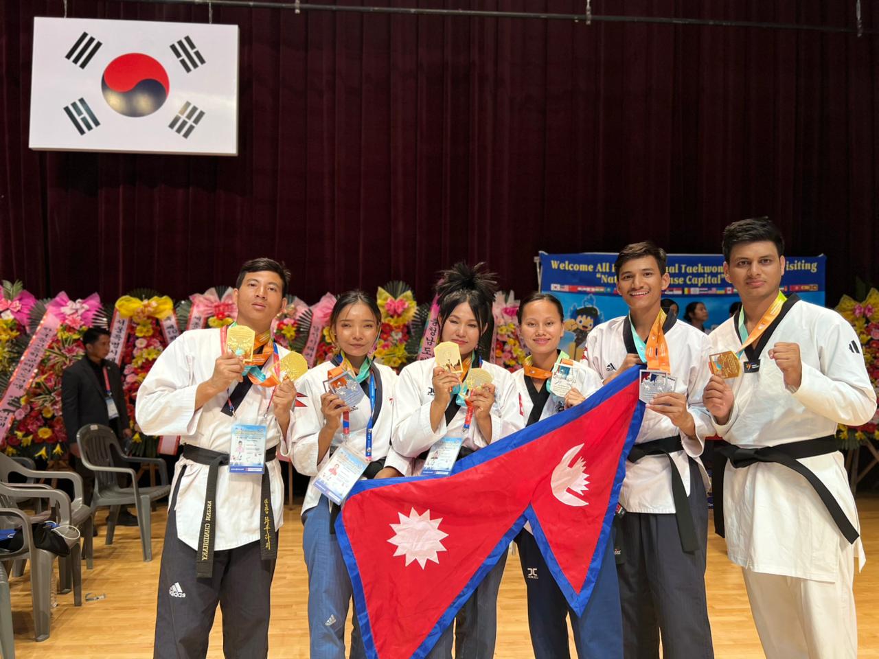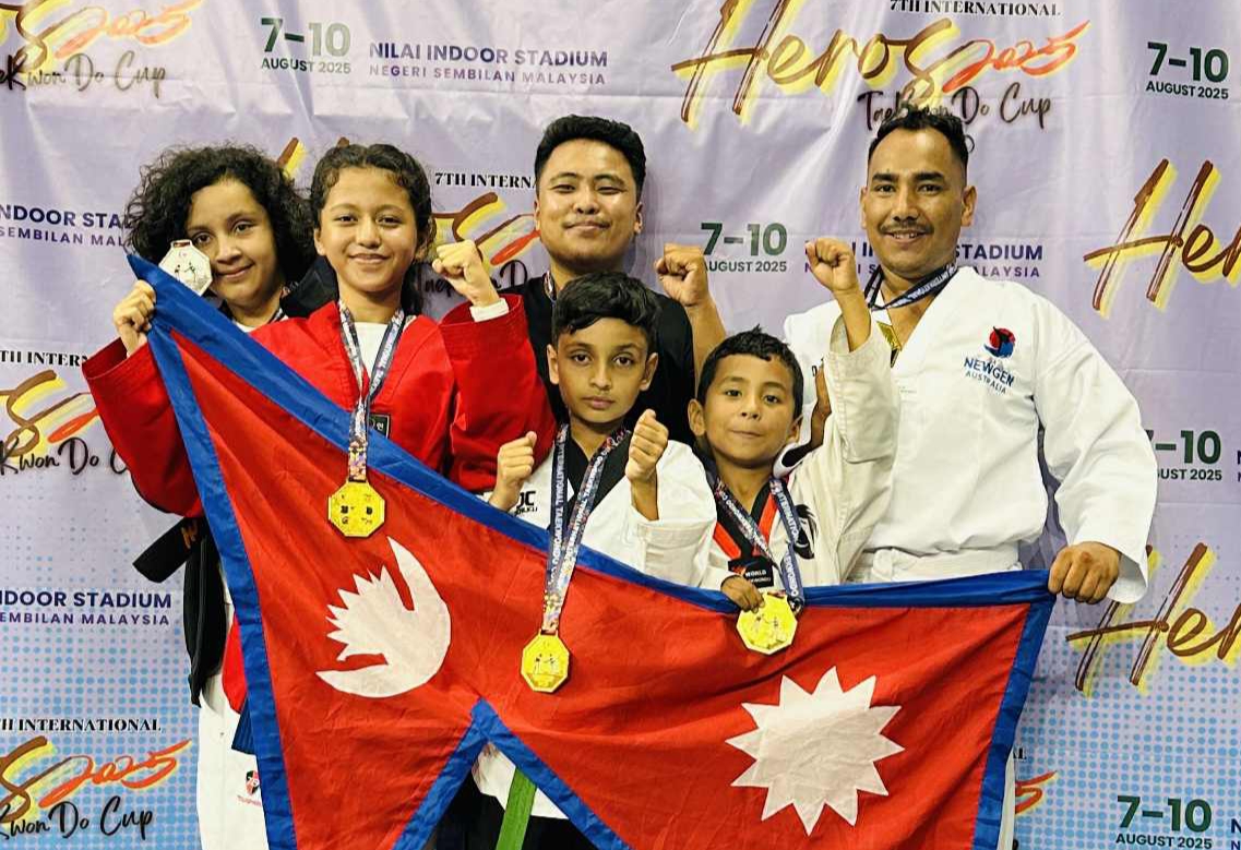 काठमाडौं (हाम्रो खेलकुद)- राष्ट्रिय खेलकुद परिषद्ले सन्चालन गरेको मिसन २०२६ मा रहेका त्रिभुवन आर्मी क्लबकी गीता कठायत र नेपाल पुलिस क्लबका अभिषेक बरालले १३औं कोरियन एम्बेस्डर अन्तर्राष्ट्रिय तेक्वान्दो प्रतियोगितामा स्वर्ण पदक जितेका छन् । सातदोबाटोस्थित नेपाल तेक्वान्दो संघको हलमा शुक्रवार भएको सिनियर महिलाको ५३ केजीमुनिको तौल समूहमा गीताले पहिलो स्थान प्राप्त गरेकी हुन्। गीताले फाइनलमा […]