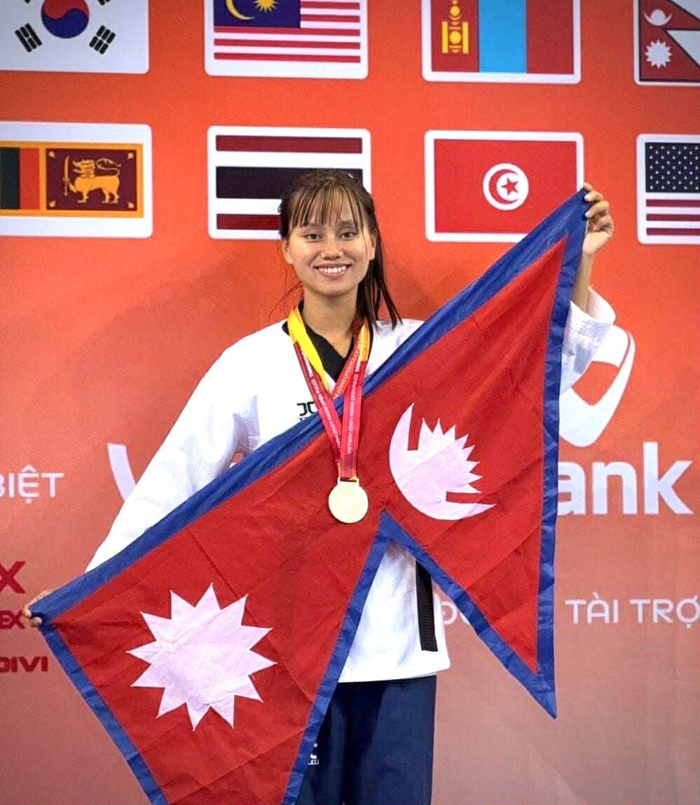 काठमाडौं (हाम्रो खेलकुद)- काभ्रे बेथानचोक गाउँपालिकाकी रमिला तामाङले कोरियमा जारी सङनामकोरिया ओपन अन्तराष्ट्रिय तेक्वान्दो च्याम्पियनसिप २०२५ मा स्वर्ण पदक जितेकी छिन् ।