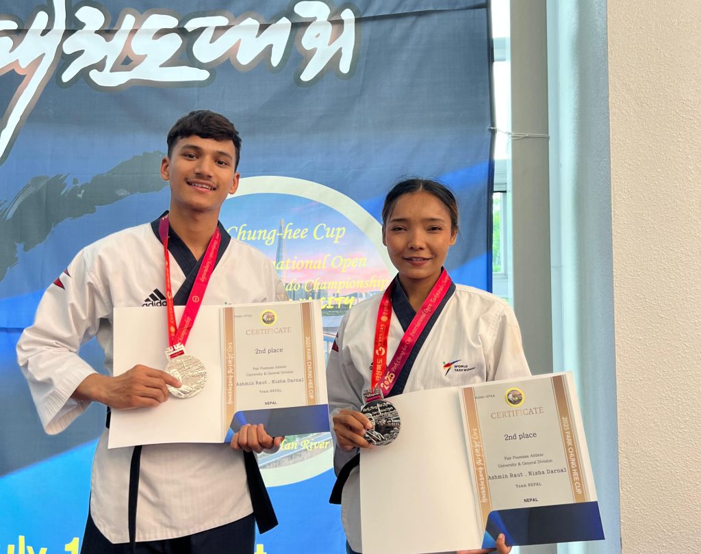 यस्तै पार्क चुंग-ही कप इन्टरनेशनल ओपन तेक्वान्दो च्याम्पियनसिपमा नेपालका अश्मिन राउत र निशा दर्नालले समान एक स्वर्ण र एक रजत पदक प्राप्त गरेका छन्।