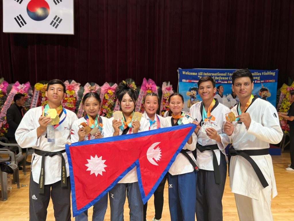 काठमाडौं (हाम्रो खेलकुद)- दक्षिण कोरियामा भएको द १० औं एमबिसी कप इन्टरनेसनल ओपन तेक्वान्दो च्याम्पियनसिपको ‘ए’ र ‘बी’ लिगमा नेपाली खेलाडीले ३ स्वर्णसहित ७ पदक जितेको छन् ।