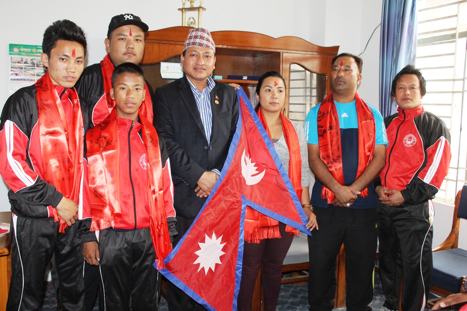 बुधबार एक कार्यक्रमविच राष्ट्रिय खेलकुद परिषदका सदस्य सचिव केशव कुमार विष्टले टोलीलाई बिदाई गरे ।