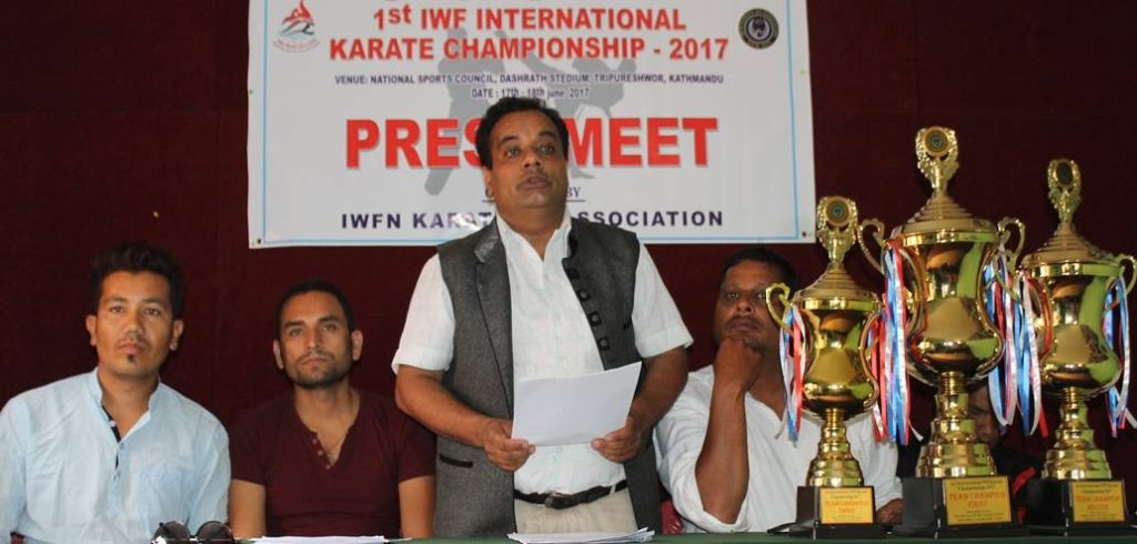 काठमाडौं (हाम्रो खेलकुद)- आईडब्लुएफएन कराते डो संघको आयोजनामा प्रथम आईडब्लुएफएन अन्तर्राष्ट्रिय कराते प्रतियोगिता शनिबारदेखि हुने भएको छ । प्रतियोगितामा नेपाल, भारत, बंगलादेश र भुटानका ४ सय खेलाडीको सहभागिता रहने आयोजक संघका अध्यक्ष लक्ष्मण लम्सालले शुक्रबार आयोजित पत्रकार सम्मेलनमा जानकारी गराए ।