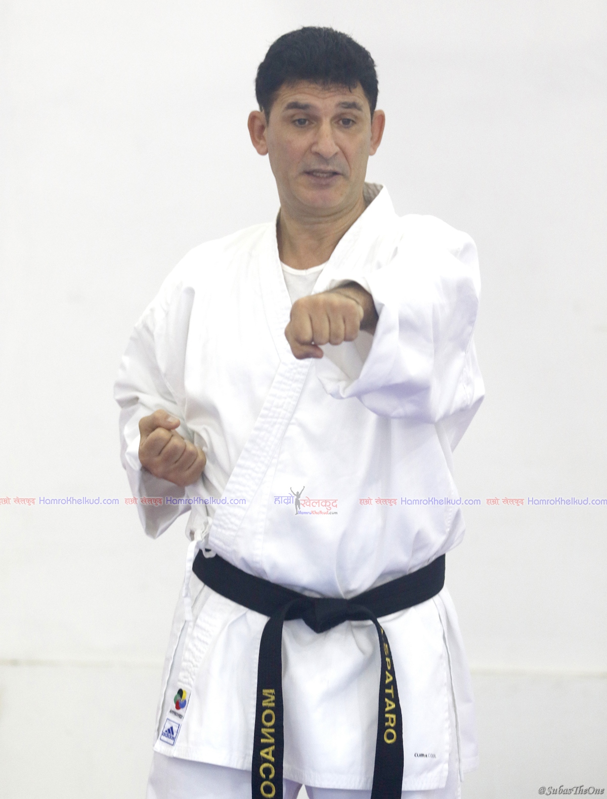 पाँच पटक कराँतेका विश्व च्याम्पियन रहिसकेका एन्जेलो स्पाटारो बिहीबार विहान गौशालास्थित शिवम प्लाजा होटेलको कन्फेरेन्स हलमा नेपाली राष्ट्रिय कराँते टोलीका खेलाडीहरुलाई प्रशिक्षण दिइरहेका थिए । नेपाली कराँते नजिकबाट नियाल्नेका लागि स्पाटारो नयाँ अनुहार होइनन् । पछिल्लो २५ वर्षदेखि नेपाली कराँतेका लागि आफूलाई नियमित समर्पित गर्दै आएका उनको हालको परिचय भने कराँतेभन्दा बाहिरको छ ।