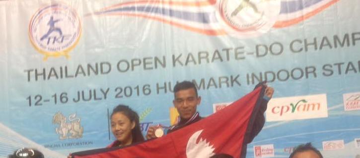 काठमाडौं (हाम्रो खेलकुद)– नेपाली खेलाडी सोनाम लामा थाइल्यान्डमा भएको ओपन कराते च्याम्पियनसिपमा काँस्य पदक जितेका छन् । अघिल्लो बर्षदेखि भाग लिएको उक्त प्रतियोगितामा नेपालले पदक जितेको यो पहिलो पटक हो । सोनामले ५५ केजी तौल समूहमा काँस्य जितेका हुन् । प्रतियोगितामा नेपालका १३ खेलाडीले भाग लिएका थिए ।