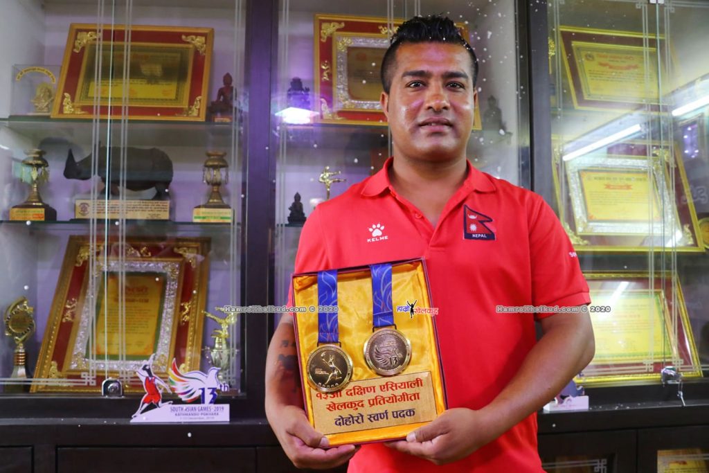काठमाडौं (हाम्रो खेलकुद) – १३ औं दक्षिण एसियाली खेलकुदमा करातेको कातातर्फ दोहोरो स्वर्ण जितेका मण्डेकाजी श्रेष्ठलाई मध्यपुर थिमी नगरपालिकाले दराज उपहार दिएको छ ।