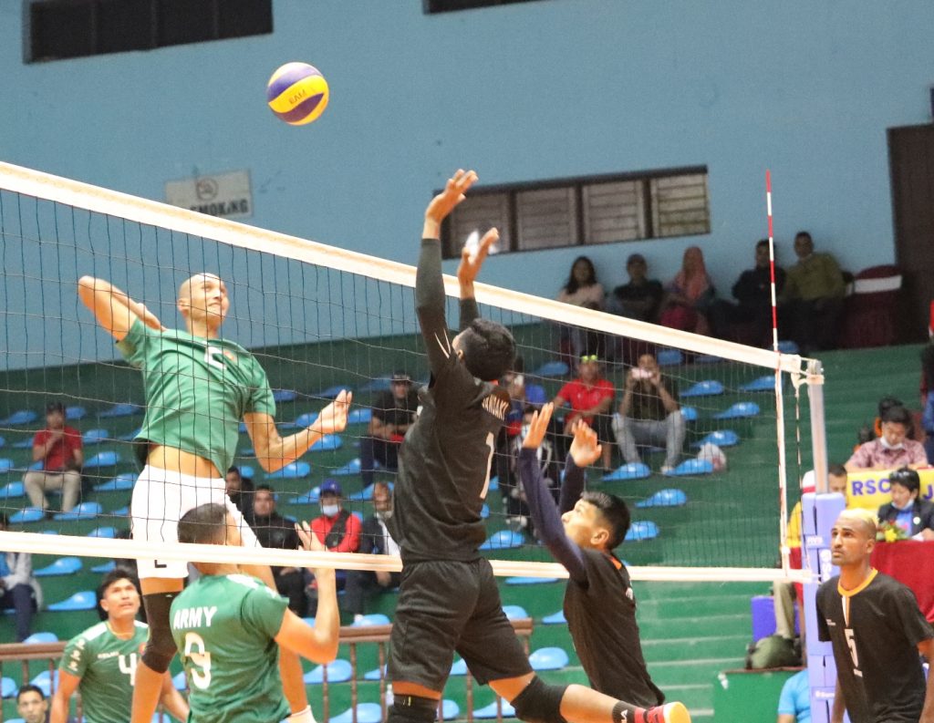 राष्ट्रिय बाणिज्य बैंकको मुख्य प्रायोजन रहेको प्रतियोगिताको महिला तर्फ सेनाले एभरेष्ट भलिबल क्लब रुपन्देहीलाई २५–१९, २५–७, २५–१८ ले हराएको थियो । पुरुषतर्फ सेनाले गण्डकी प्रदेश भलिबल क्लबलाई २५–१९, २५–८, २५–१८ ले जित निकाल्दै ६ अंकका साथ अग्रस्थानमा रहन सफल भयो । प्रतियोगिताको पहिलो दिन पनि सेनाले अर्को विभागिय टोली एपिएफलाई २५–२३, २५–१८, २५–२२ ले पराजित गर्दै ३ अंक जोडेको थियो ।