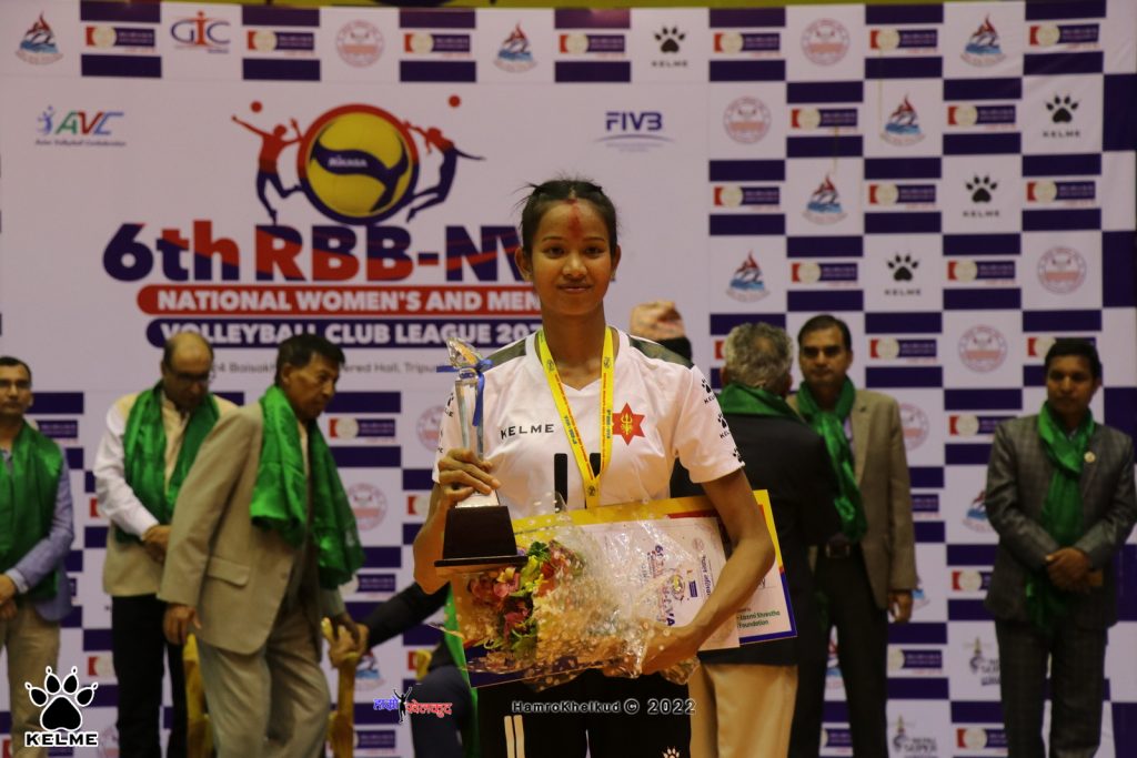 महिलातर्फ सलिना श्रेष्ठ उत्कृष्ट लिबेरो, अरुणा शाही उत्कृष्ट सेटर, शान्ति थारु उत्कृष्ट सर्भर, निरुता ठगुन्ना उत्कृष्ट स्पाइकर, सुनिता खड्का उत्कृष्ट ब्लकर घोषित भइन् । महिलातर्फ प्रगतिनाथ उदियमान खेलाडी चुनिदा लोकेश बुढा उत्कृष्ट प्रशिक्षक चुनिए ।