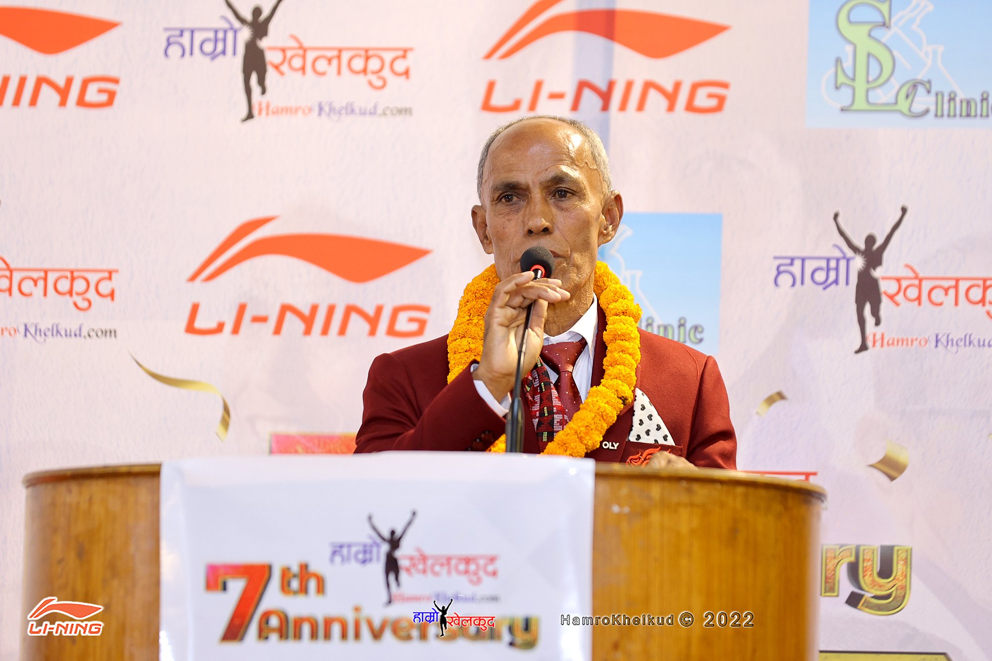 मेरो पालोमा त यहाँ उपस्थित हुनु भएको धेरै जना जन्मिनु भएको थिएन होला । हामी २ रुपैयाँको डाएट खाएर खेल्दै आएका पुस्त हौं । खेलकुदले सरकार बाट वार्षिक ३ लाख बजेट पाउँथ्यो । सीमित बजेटका कारण परिसरलाई पनि मुस्किल हुन्थ्यो । ३ लाखले कर्मचारीलाई तलब दियोस् कि के गरोस् । जुत्ता लगाउने नभएर खाली खुट्टा दौडेर मैले ४२ किलोमिटर पुरा गरेको हो ।