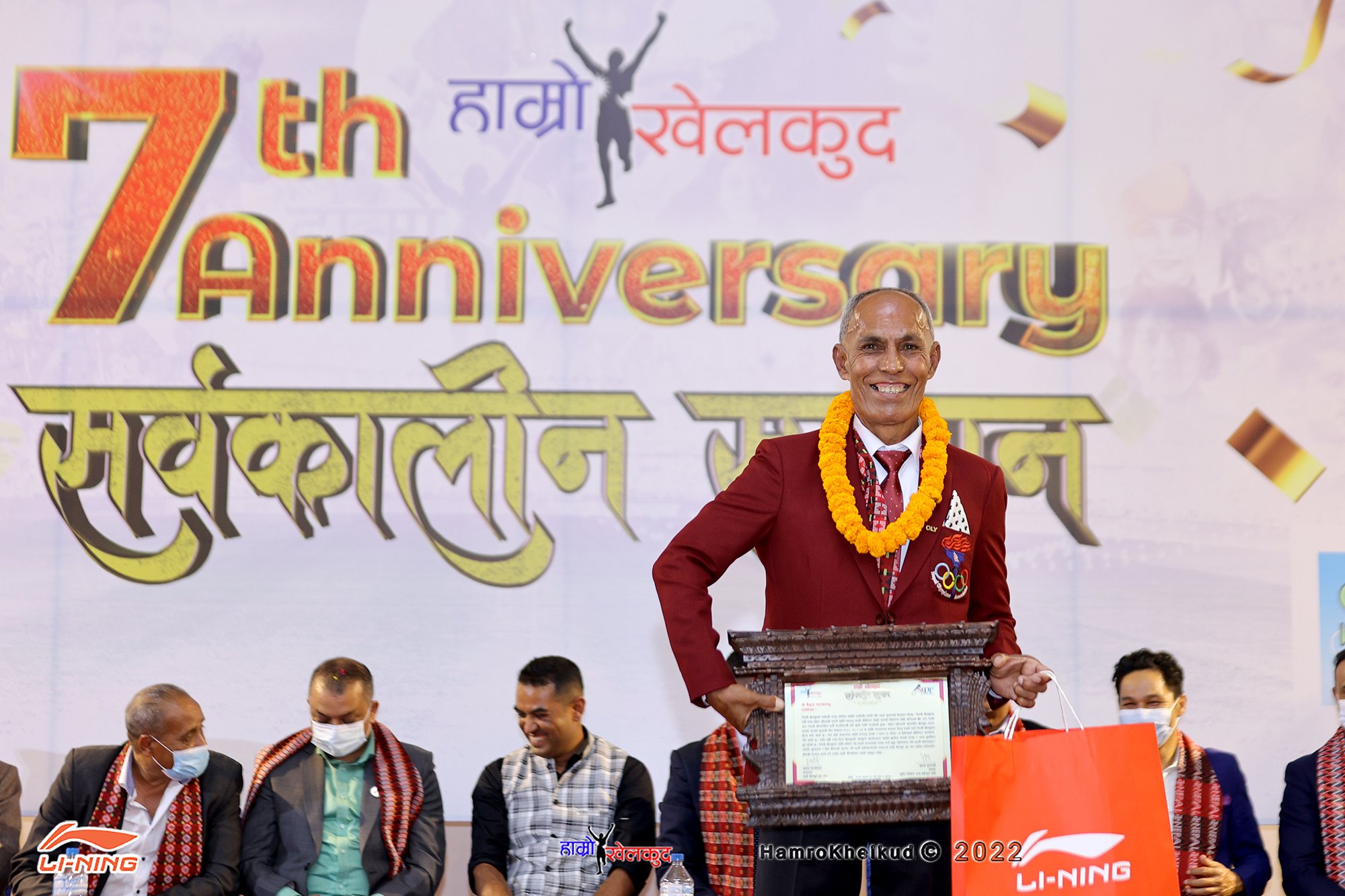 पहिलो अन्तर्राष्ट्रिय पदक विजेता धावक जीतबहादुर केसी, दक्षिण एसियाली खेलकुद (साग) का कीर्तिमानी धावक बैकुण्ठ मानन्धर, सागमा खेलाडी र प्रशिक्षकका रुपमा स्वर्ण पदक विजेता फुटबलका राजुकाजी शाक्य, छनोट चरण पार गर्ने पहिलो ओलम्पियन तेक्वान्दोकी संगिना वैद्य, सागमा लगातार ४ स्वर्ण पदक जितेका तेक्वान्दोका दीपक विष्ट, नेपाली क्रिकेट इतिहासका सर्वाधिक सफल कप्तान पारस खड्का र सागको एकै संस्करणमा सर्वाधिक पदक विजेता पौडीकी गौरिका सिंह एकै थलोमा हाम्रो खेलकुद सर्वकालीन सम्मानबाट सम्मानित भए । उनीहरुले सम्मान पत्र र जनही २५ हजार रुपैयाँ प्राप्त गरे ।