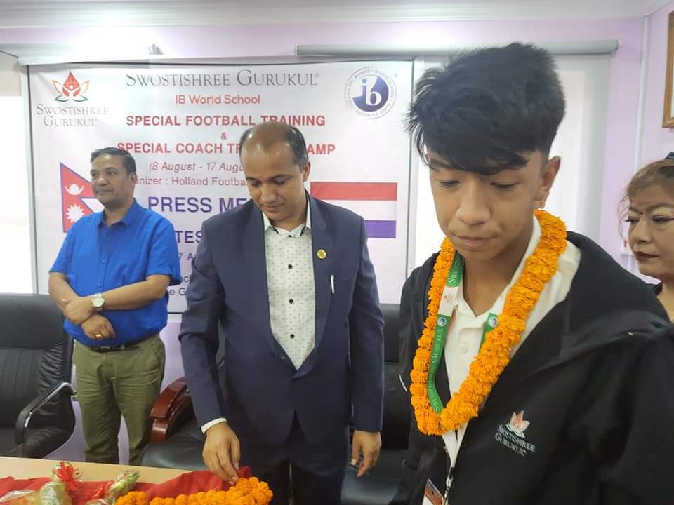 एन्फाका उपाध्यक्ष लामाले स्कुलको मात्र नभई नेपाल र एन्फाको समेत प्रतिनिधित्व गर्ने भएकोले शुभकामना दिदै त्यसले नेपाली फुटबललाई फाइदा हुने विश्वास व्यक्त गरे । खेलाडीहरु आफ्नो खर्चमा त्यस तर्फ जान लागेको र व्यक्तिगत सम्बन्धका कारण प्रशिक्षण कार्यक्रममा सहभागी हुने भएकाले छनोट नगरिएको पूर्व कप्तान गुरुङले जानकारी दिए । टोली सोमबार त्यस तर्फ जानेछ ।