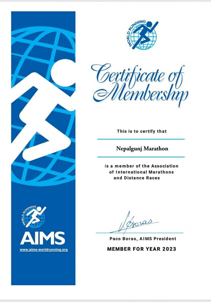 नेपालगन्ज म्याराथनअन्तर्गत म्याराथ (४२.१९५किमी) , हाफ म्याराथना ( २१.०९७५ किमी) , १० किमी र ५ किमी गरी चार वटा दुरीको अलगअलग प्रमाणपत्र रहेको नेपालगन्ज म्याराथनका संस्थापक अध्यक्ष टीएस ठकुरीले जनाएका छन् । वल्र्ड एथ्लेटिक्स अन्तर्गत म्याराथनको नियमनकारी निकाय एम्समा एक सय १५ देशका ४ सय ५३ रेश आयोजक सदस्य रहेको बताइन्छ ।
