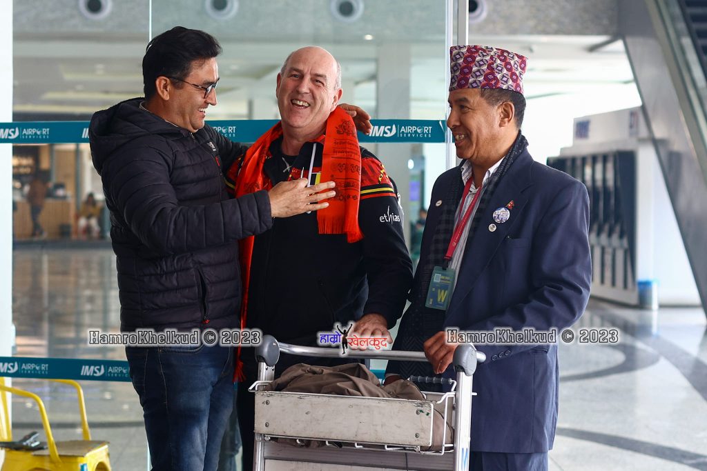 काठमाडौं (हाम्रो खेलकुद) – राष्ट्रिय भलिबल टोलीका मुख्य प्रशिक्षक बेल्जियन जान डे ब्रान्ट बुधबार काठमाडौं आइपुगेका छन् । डे ब्रान्टलाई नेपाल भलिबल संघका अध्यक्ष जीतेन्द्रबहादुर चन्द, महासचिव रोशन श्रेष्ठलगायतले त्रिभुवन अन्तर्राष्ट्रिय विमानस्थलमा स्वागत गरेका छन् ।