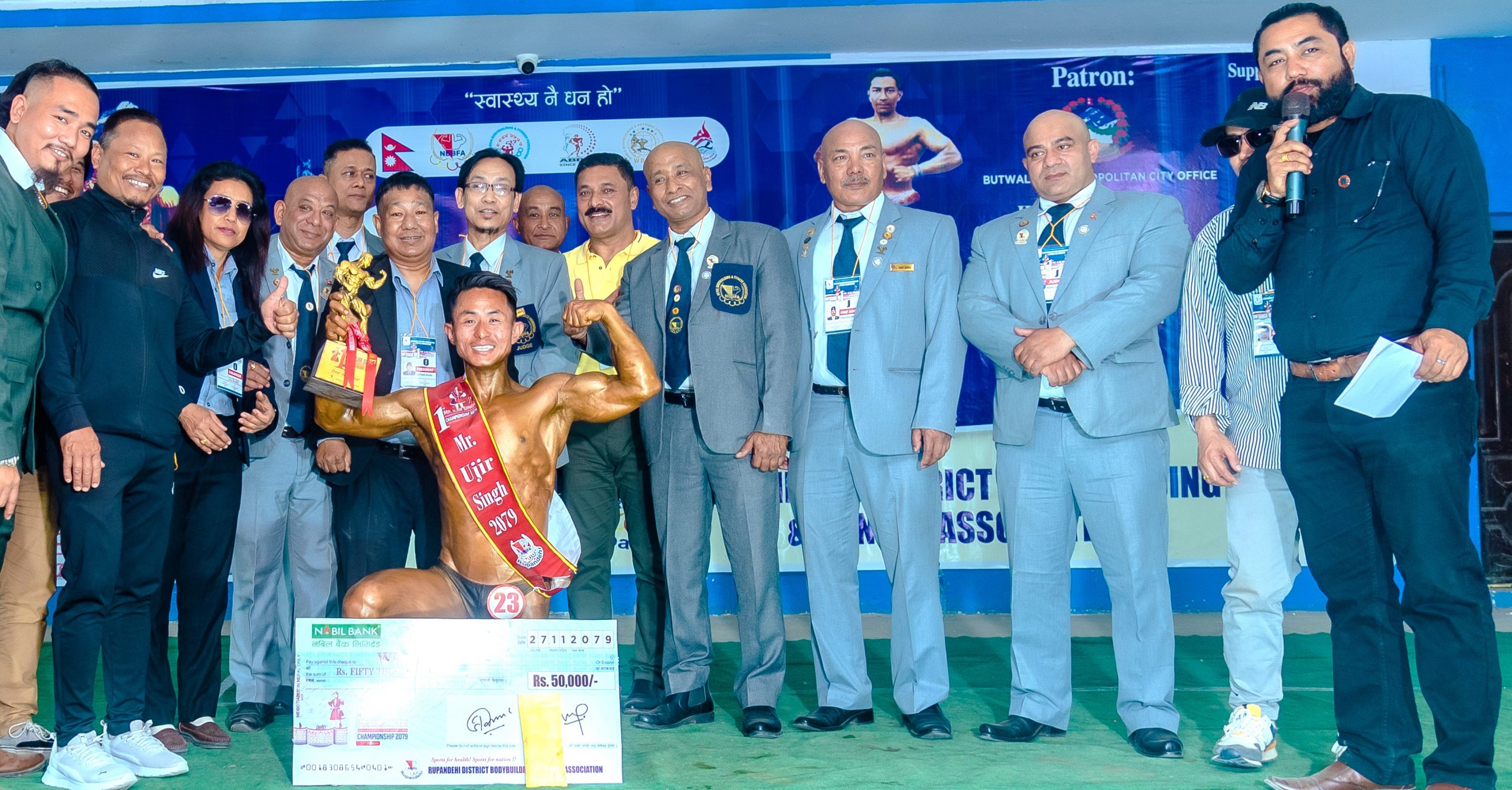 रुपन्देही जिल्ला शारीरिक सुगठन तथा फिटनेस संघको आयोजनामा शनिबार बुटवलमा सम्पन्न प्रतियोगिताको विजेतालाई प्रदेश खेलकुद परिषद लुम्बिनीका सदस्य सचिव जयप्रकाश भट्टराई, आयोजक संघका अध्यक्ष सितुप्रसाद श्रेष्ठ, बुटवल उपमहानगरपालिका प्रमुख प्रशासकीय अधिकृत टेकराज पन्थी, नेपाल शारीरिक सुगठन तथा फिटनेस महासंघका केन्द्रीय उपाध्यक्ष दिनेश राजभण्डारी तथा बुटवल उपमहानगरपालिका बडा न ९ का अध्यक्ष प्रदिप श्रेष्ठ लगायतले पुरस्कार वितरण गरेका थिए ।