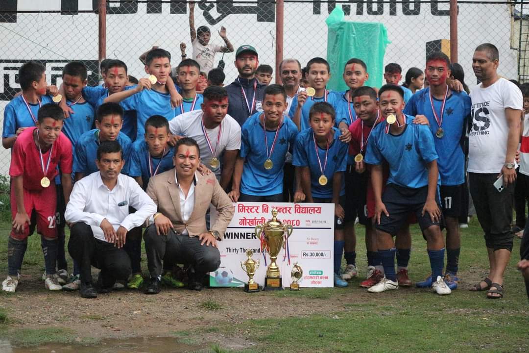 गोरखा (हाम्रो खेलकुद)– ओल्ड क्यापिटल रानीवनले मिस्टर बी अन्तरविद्यालय गोर्खाली कप फुटबल उपाधि जितेको छ ।गोरखा सदरमुकामको हरमटारी खेलकुद मैदान आइतबार भएको फाइनलमा दिर्घेश्वर मावि फुजेललाई टाइब्रेकरमा ५–४ ले हराउँदै ओल्ड क्यापिटलले उपाधि जितेको हो ।