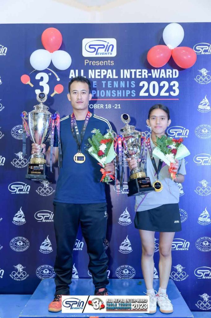 महिला र पुरुष दुवैतर्फका सिंगल्सका विजेताले समाान ३० हजार, दोस्रोले १५ हजार र तेस्रोेले समान ७ हजार ५ सय रुपैयाँ प्राप्त गरे । सातदोबाटोस्थित कराते हलमा भएको प्रतियोगितामा जम्मा १० स्पर्धामा प्रतिस्पर्धा भएको थियो । अन्य स्पर्धाको यु–१६ ब्वाइज सिंगल्समा कीर्तिपुर ६ का जयस्नु महर्जन र गल्र्समा कीर्तिपुर ६ की योङगी पौडेल विजयी भए ।