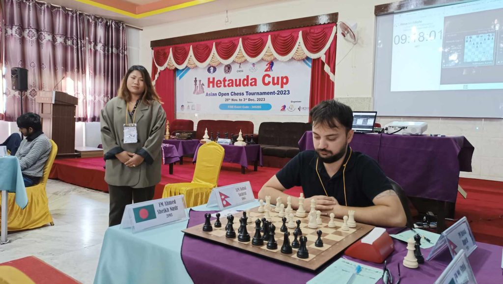 उपाधिका लागि जित्नै पर्ने आठौं चरणको अर्को खेल उनकै समकक्षी बंगलादेशी एफएम सरिफ होसेनसंग कालो गोटी लिएर खेल्ने छन्।
