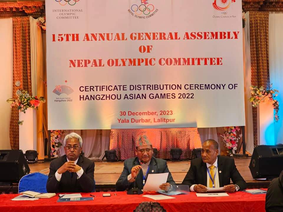 त्यस अगाडि आजै एनओसीको १५ औं साधारण सभा सम्पन्न भएको थियो । एनओसीका अध्यक्ष जीवनराम श्रेष्ठले बन्द सत्र सन्चालन गरेका थिए । त्यस अवसरमा एनओसीका महासचिव निलेन्द्रराज श्रेष्ठले वर्ष सन् २०२३ को प्रगति विवरण पेस गरेका थिए।