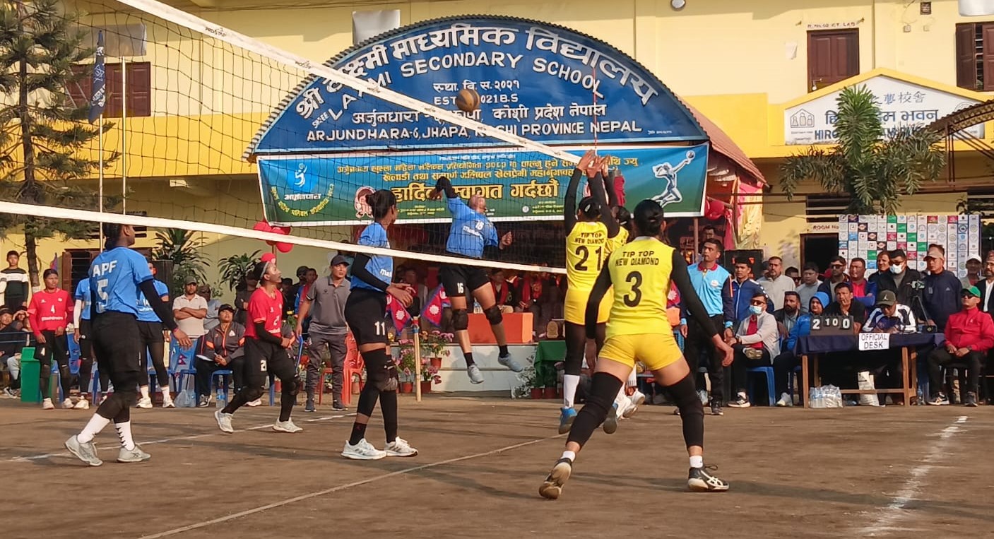 हिमाल खरेल, बिर्तामोड नेपाल एपिएफ क्लब झापाको अर्जुनधारामा जारी अर्जुनधारा खुला महिला भलिबल प्रतियोगिताको फाइनलमा प्रवेश गरेको छ । आज भएको अन्तिम सेमिफाइनल खेलमा न्यु डायमन्ड क्लबलाई ३–१ को सेटमा पराजित गर्दै एपिएफ उपाधिनजिक पुगेको हो । प्रतिस्पर्धात्मक खेलमा एपिएफले पहिलो, दोस्रो र चौथो सेटमा न्यु डायमन्डलाई हराएको हो । एपिएफ २५–२२, २५–१६ ,२२-२५ र […]