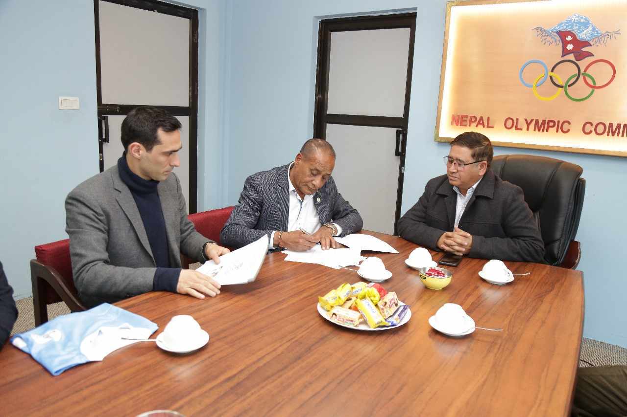 एनओसीको मुख्यालय सातदोबाटोमा आयोजित कार्यक्रममा कमिटीका अध्यक्ष जीवनराम श्रेष्ठको पनि उपस्थिति थियो । त्यस अवसरमा अध्यक्ष श्रेष्ठले यो अनुबन्धले नेपाली खेलकुदमा नयाँ आयाम थपेको बताए । यस्तै उनले नेपाल र फ्रान्सबीच रहेको सुमधर सम्बन्ध अझै प्रगाढ हुने विश्वास व्यक्त गरे ।