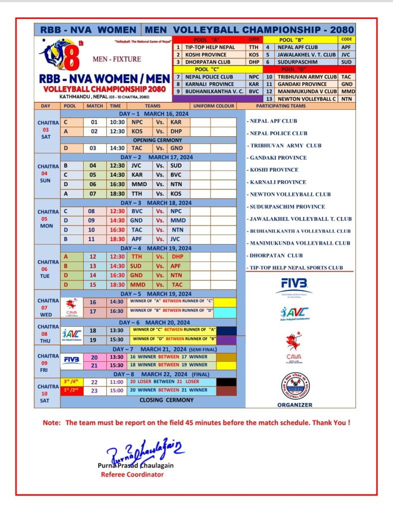 च्याम्पिनसिपमा शनिबार पुरुषतर्फ ३ खेल हुनेछन् । पुलिस त कर्णाली, कोशी प्रदेश र ढोरपाटन क्लब तथा आर्मी र गण्डकीबीच प्रतिस्पर्धा हुनेछ।