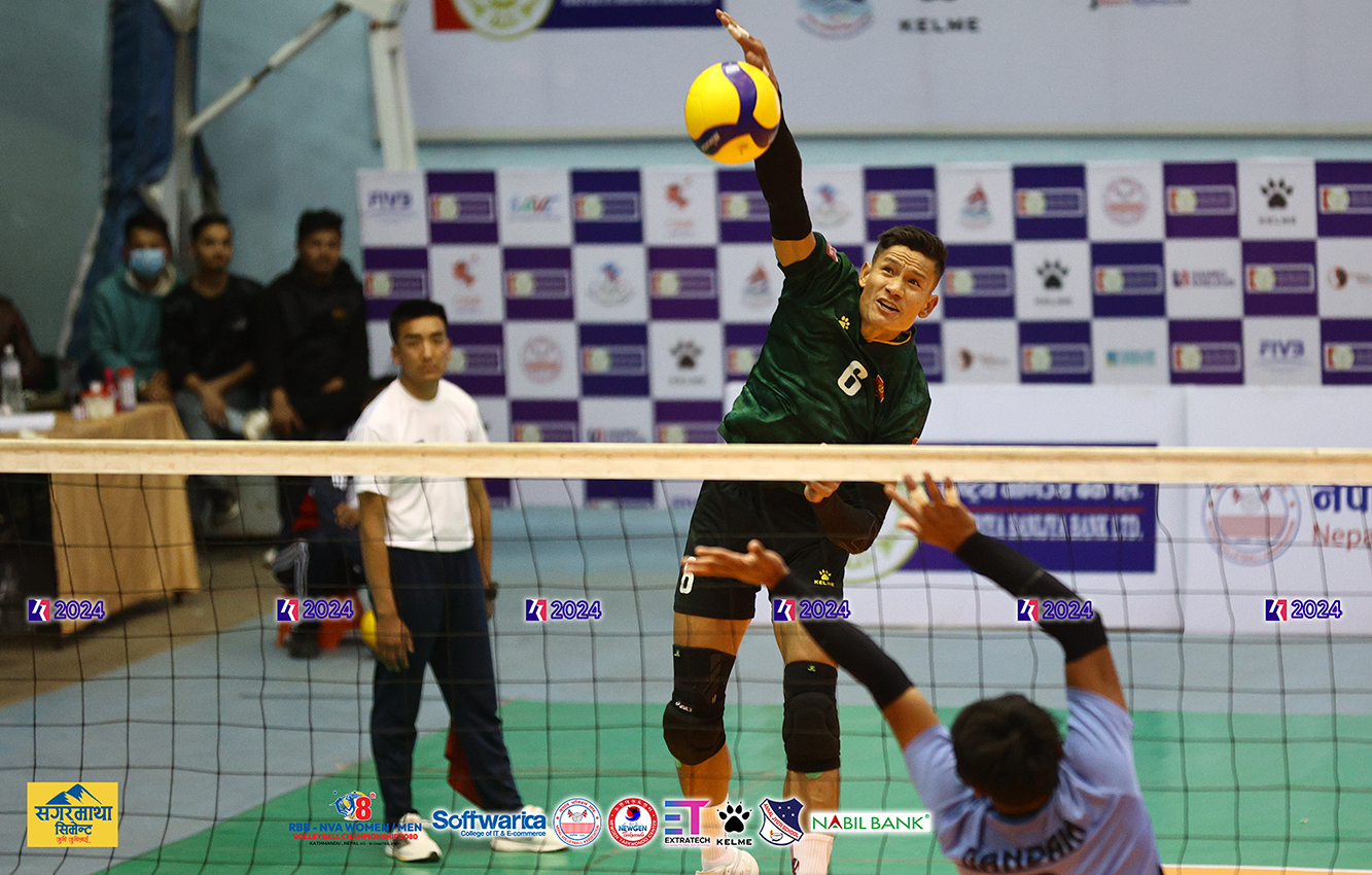 त्रिपुरेश्वरस्थित राष्ट्रिय खेलकुद परिषद्को कभर्ड हलमा सुुरु भएको च्याम्पिनसिपको पहिलो दिन अन्तिम खेलमा आर्मीले गण्डकी प्रदेशलाई ३-० ले हराएको छ। पहिलो सेटमा कडा टक्कर दिएको गण्डकी त्यसपछि भने कमजोर रह्यो। आर्मी २९-२७, २५-१९, २५- १७ ले विजयी भएको हो।