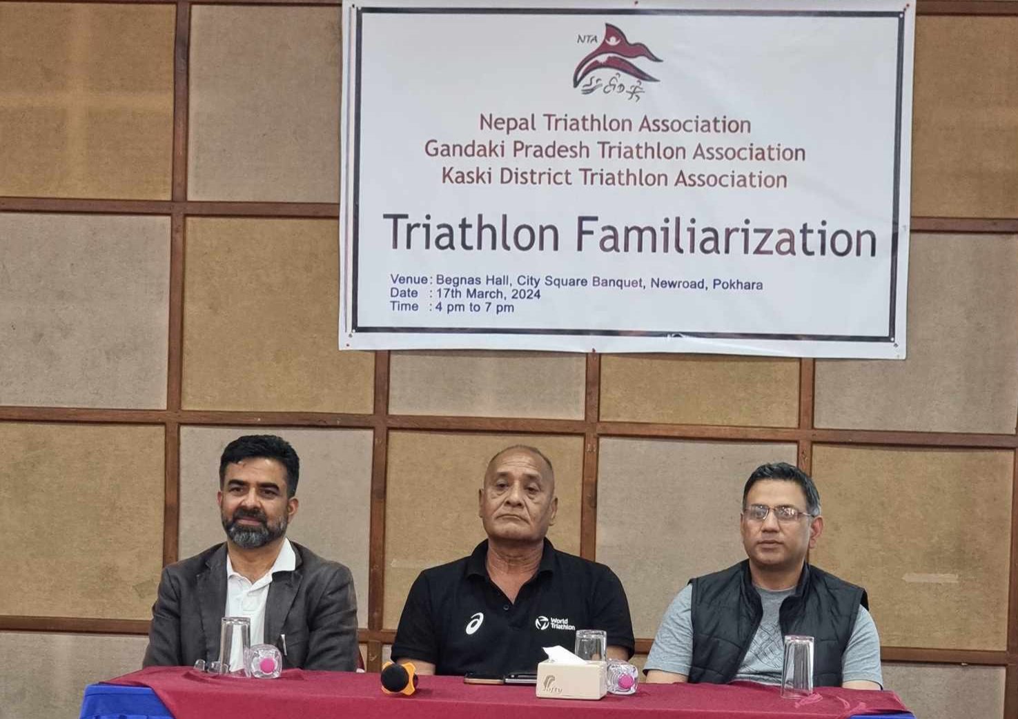 ट्रायथलन संघका अध्यक्ष निलेन्द्रराज श्रेष्ठले पोखरामा वैशाख महिना हुने एसिया ट्रायथलन कप र दक्षिण एसिया ट्रायथलन च्याम्पियन्सिप सफल बनाउने सो क्षेत्रका सरोकारवालाहरुसँग छलफल गरेका हुन् ।