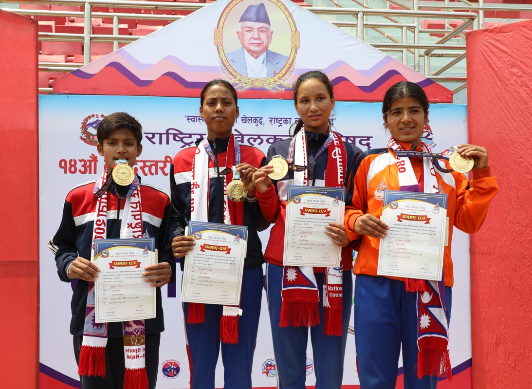 छात्रा ४ गुणा ४ सय मिटर रिलेमा भावना फर्साल, सरिता खड्का, हिमाली शाही र कृष्णा राना सम्मिलित कर्णाली टोलीले कीर्तिमानी स्वर्ण जिते । उक्त टोलीले निर्धारित दूरी ४ मिनेट १७.२ सेकेन्डमा पार गरे । यसअघि उक्त कीर्तिमान लुम्बिनीका अरुणा रिजाल, पूर्णिमा खड्का, पूजा चौधरी र करुणा रिजालको नाममा ४ मिनेट २३.८ सेकेन्डको कीर्तिमान थियो । लुम्बिनी दोश्रो तथा सुदूरपश्चिम तेश्रो स्थानमा रहे ।