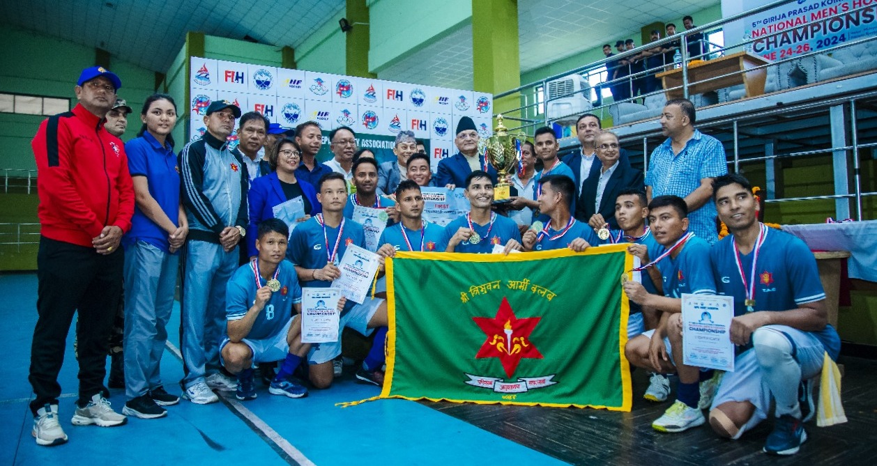 पोखरा (हाम्रो खेलकुद)- त्रिभुवन आर्मी क्लबले पाँचौं गिरिजाप्रसाद कोइराला स्मृति राष्ट्रिय पुरुष हक्की प्रतियोगताको उपाधि जितेको छ ।