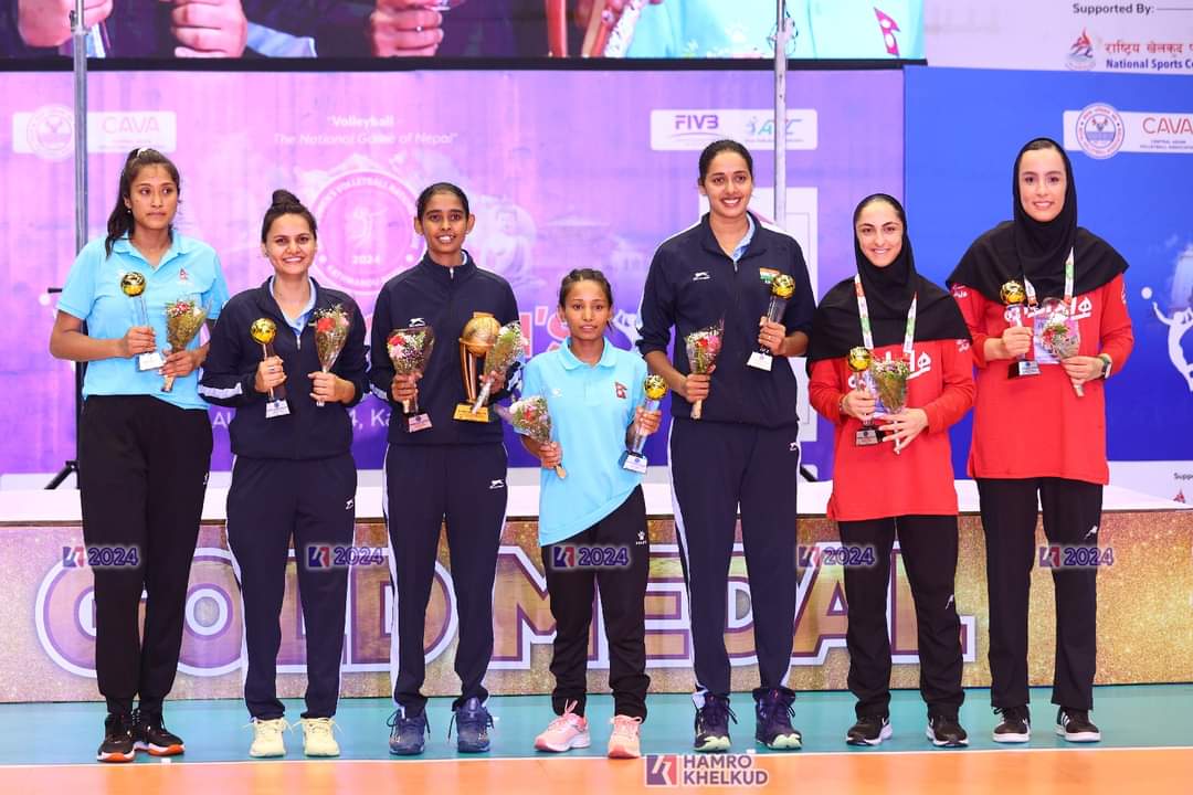 रजत पदक विजेता नेपालले २ व्यक्तिगत अवार्ड प्राप्त गर्यो। सलिना श्रेष्ठले बेस्ट लिबेेरो र सरस्वती चौधरीले बेस्ट अपोजिट प्लेयरको अवार्ड हात पारिन् ।
