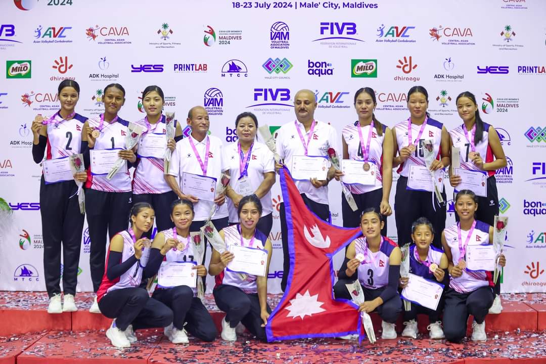 काठमाडौं (हाम्रो खेलकुद) – नेपाल भलिबल संघले काभा यु २० महिला भलिबल च्याम्पियनसिपमा कास्य पदक जित्ने नेपाली टोलीलाई नगदबाट पुरस्कृत गर्ने भएको छ ।