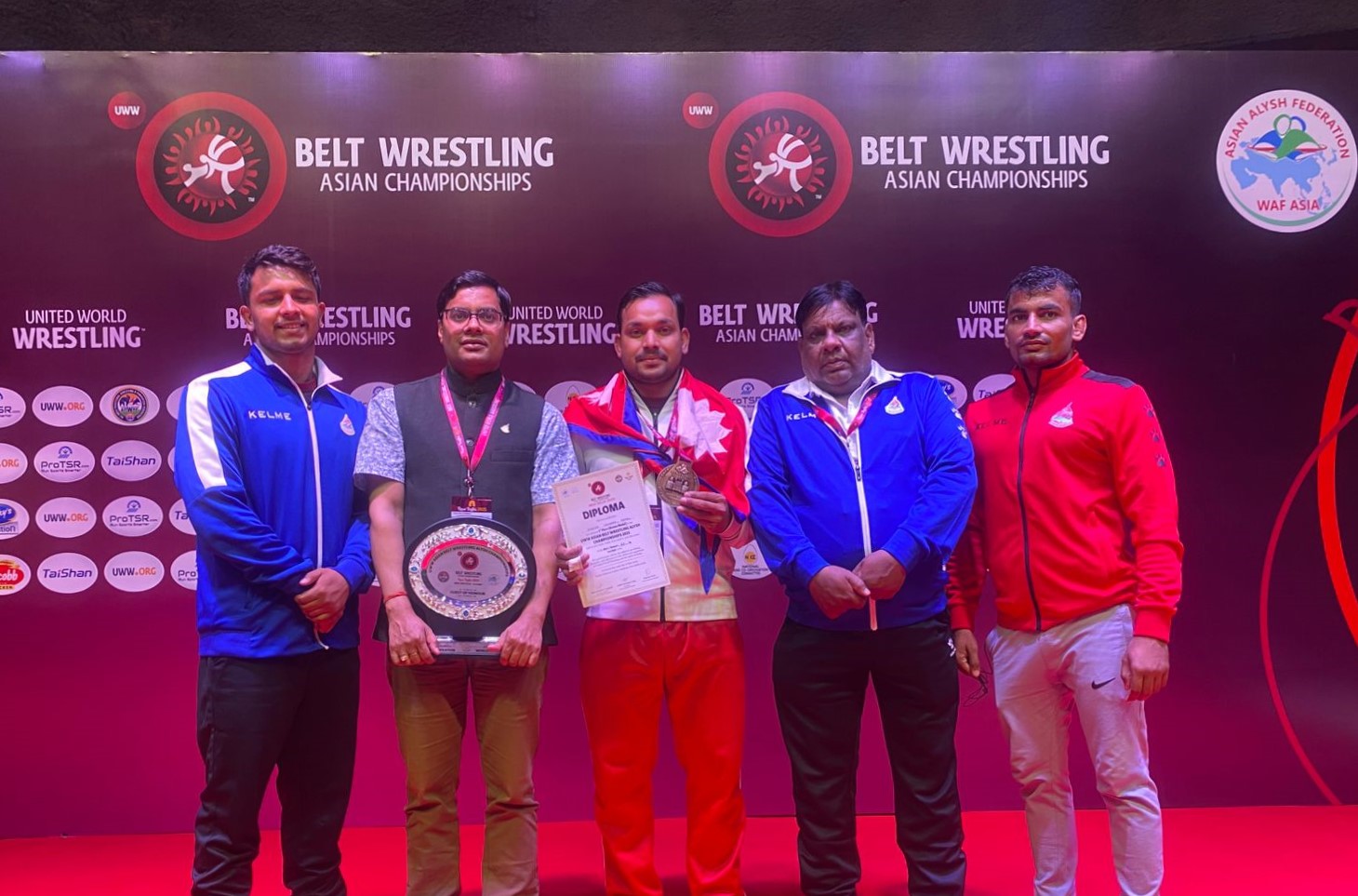 काठमाडौं (हाम्रो खेलकुद)- सुरेश चुनाराले युडब्लुडब्लु एसियन बेल्ट कुस्ती एलिस च्याम्पियनसिपमा कास्य पदक जितेका छन् ।