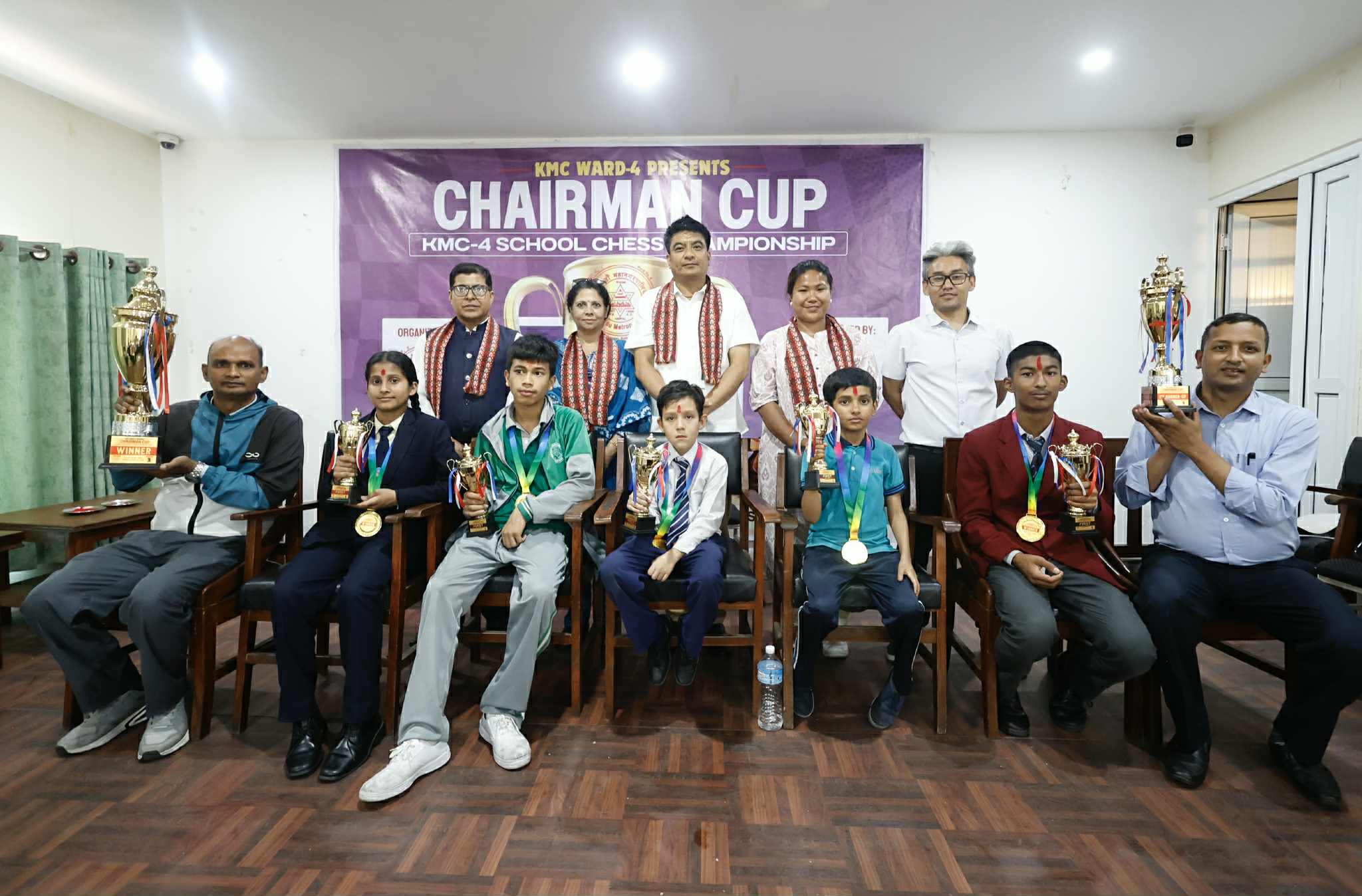 बालुवाटारस्थित महेन्द्र राष्ट्रिय माविको हलमा आयोजित प्रतियोगिताका च्याम्पियन तथा विभिन्न ६ स्पर्धाका विजेताहरूलाई काठमाडौं महानगरपालिका ४ का वडाध्यक्ष दिनेश महर्जन, चेसकी पहिलो महिला राष्ट्रिय च्याम्पियन मोनालिशा खम्बूलगायतले ट्रफी, मेडल तथा प्रमाणपत्र प्रदान गरे ।