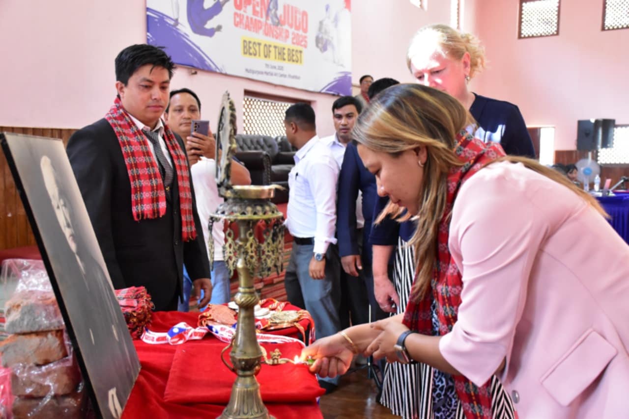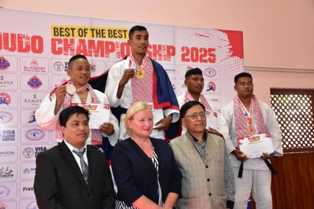 नेपालका लागि फ्रान्सेली राजदुत भर्जिनी कोर्टेवाल र नेपाल जुडो संघका अध्यक्ष दीपकहर्ष वज्राचार्यले विजेता खेलाडीलाई पुरस्कृत गरे।