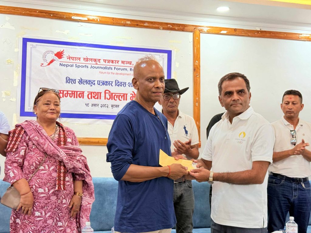 अन्तर्राष्ट्रिय खेलकुद पत्रकार दिवसका अवसरमा आज आयोजित पूर्व खेलाडी एवं प्रशिक्षक सम्मान गरिएको छ। जिल्ला भेलाले हाम्रो खेलकुदका लुम्बिनी प्रदेश संयोजक सुमन अधिकारीको अध्यक्षतामा ११ सदस्यीय जिल्ला समिति सर्व सम्मत चयन गरेको हो ।