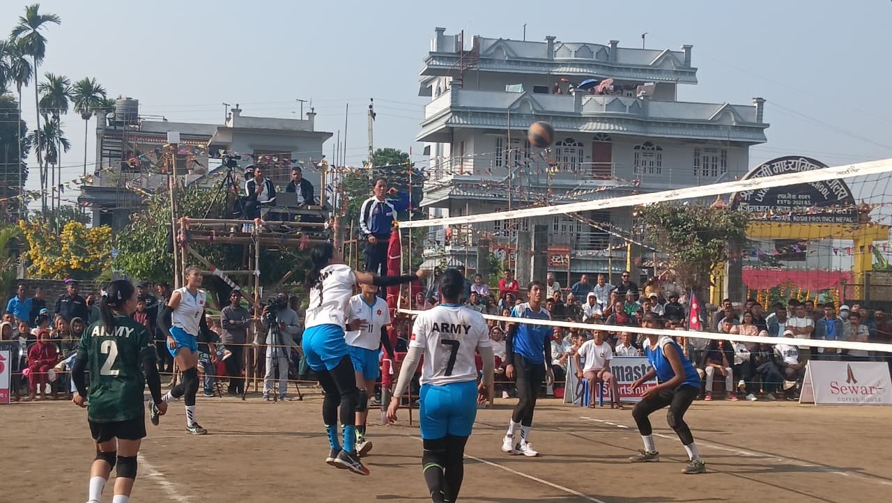 हिमाल खरेल, बिर्तामोड त्रिभुवन आर्मी क्लब झापाको अर्जुनधारामा जारी अर्जुनधारा खुला महिला भलिबल प्रतियोगितामा सेमिफाइनलमा प्रवेश गरेको छ । आज भएको समूह चरणको आफ्नो अन्तिम खेलमा एभरेस्ट लुम्बिनी क्लबलाई ३-० को सोझो सेटमा पराजित गर्दै आर्मी अन्तिम चारमा पुगेको हो । आर्मी समूह उपविजेता भएको छ । आर्मीले २१–२५, १८–२५ र १०–२५ को सोझो सेटमा […]