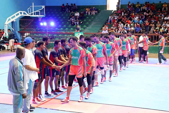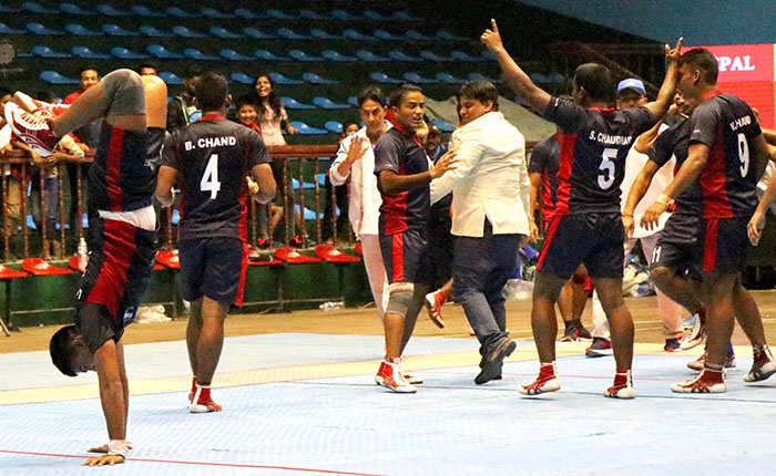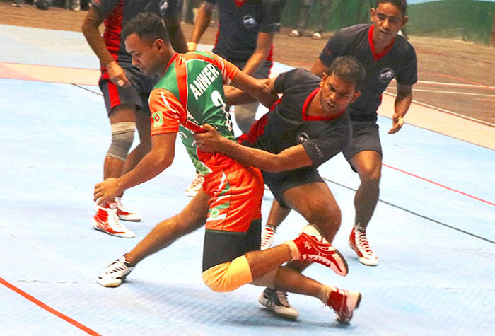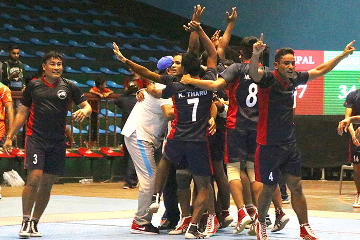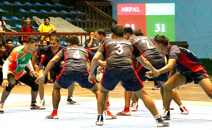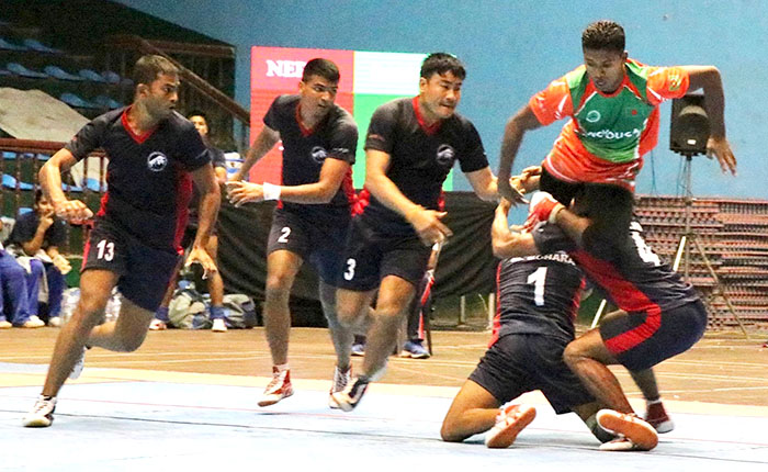 त्रिपुरेश्वस्थित राष्ट्रिय खेलकुद परिषद (राखेप) को कवर्डहलमा भएको प्रतियोगिताको पहिलो खेलमा नेपालले बंगलादेशलाईलाई ३७–३५ को प्रतिस्पर्धात्मक अंकमा पराजित गरेको हो ।सुरुआत देखि नै खेलमा पछि परेको नेपाल एक समय २१–११ ले पछि रहेको थियो । तर, बंगलादेशका कप्तान मसुद करिम र अनवर हुसेनलाई लगतार आउट गरेपछि नेपालले खेललाई आफ्नो नियन्त्रणमा राख्न सफल भएको थियो ।
