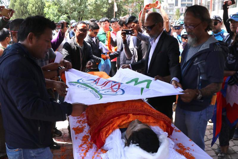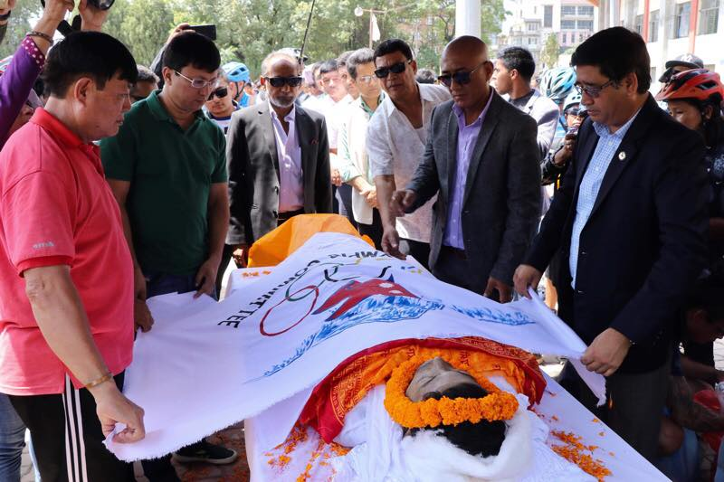 काठमाडौं (हाम्रो खेलकुद) – श्रीलंकामा भएको रम्वल इन जंगल २०१८ को माउन्टेन बाइक रेस च्याम्पियनसिपको क्रममा लडेर निधन भएका नेपाली राष्ट्रिय च्याम्पियन नारायण गोपाल महर्जनलाई खेलकर्मीले अन्तिम श्रद्धान्जली दिएका छन् । अन्तिम श्रद्धान्जलीका लागि नारायणको शव त्रिपुरेश्वरस्थित राष्ट्रिय खेलकुद परिषद् (राखेप) परिसरमा राखिएको थियो ।