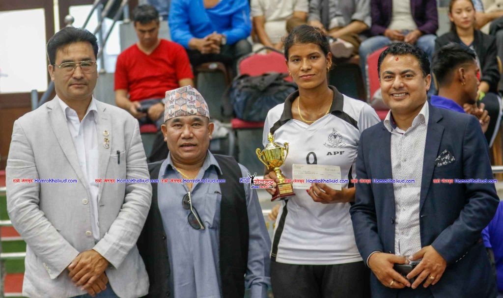 काठमाडौं (हाम्रो खेलकुद )- नेपाल एपिएफ क्लब राजधानीमा जारी केएनपी राष्ट्रिय महिला भलिबलको फाइनलमा पुगेको छ ।