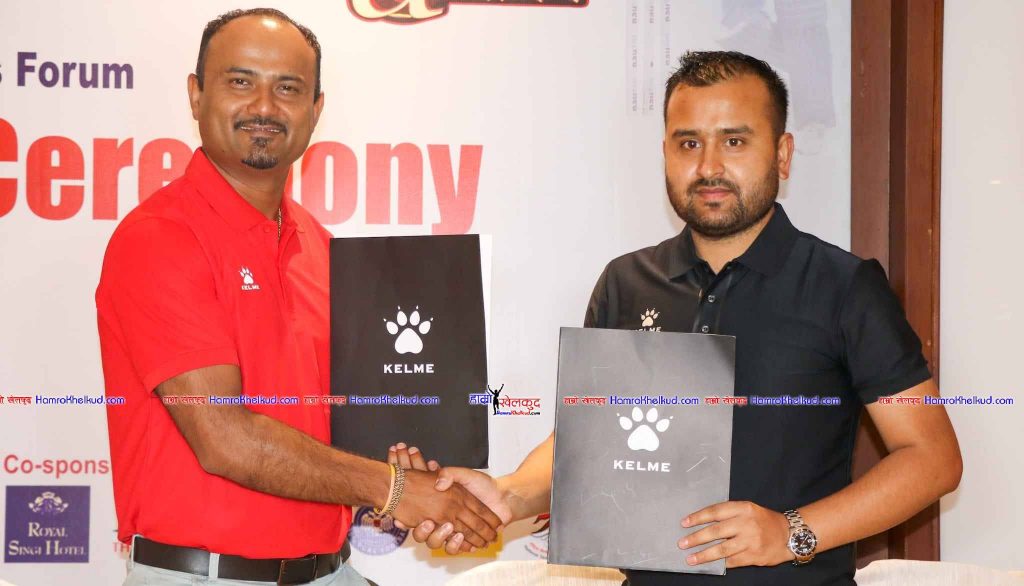 अवार्ड आयोजक नेपाल खेलकुद पत्रकार मञ्चका अध्यक्ष देवेन्द्र सुवेदी र केल्मीका लागि नेपालका आधिकारिक विक्रेता कामारु ट्रेडिङका प्रबन्ध निर्देशक उत्तम न्यौपानेले बिहीबार राजधानीमा आयोजित कार्यक्रममा सम्झौता पत्रमा हस्ताक्षर गरे । अवार्ड असार १७ गते काठमाडौंमा आयोजना हुँदैछ ।