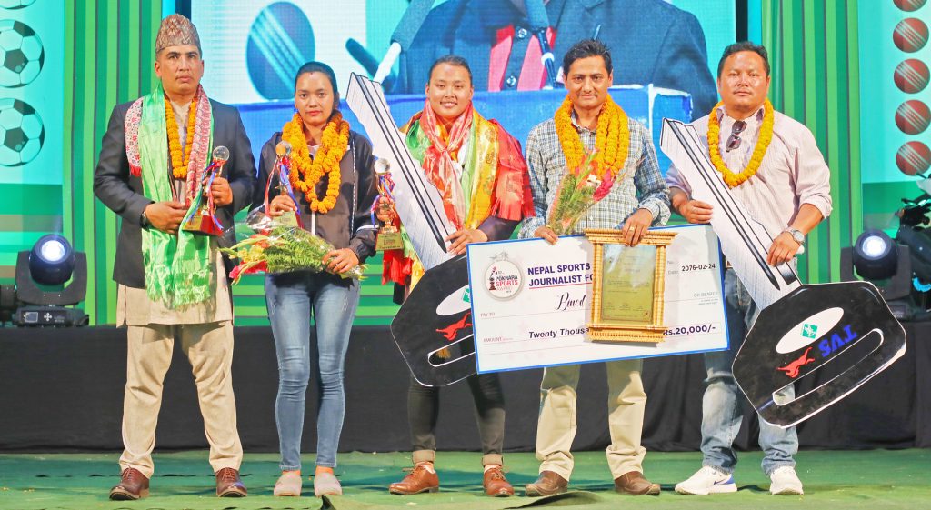लाइफटाइम अचिभमेन्ट अवार्डबाट बक्सिङका चित्रबहादुर गुरुङलाई सम्मानित भए । वर्ष उत्कृष्ट पत्रकार पुरस्कारबाट मञ्च पूर्व अध्यक्ष विनोद लामिछाने २० हजारसहित पुरस्कृत भए । वर्ष उत्कृष्ट खेल संघ अवार्ड जिल्ला बास्केटबल संघ कास्कीलाई १५ हजार रुपैयाँसहित सम्मान गरियो ।
