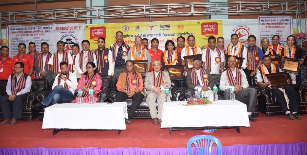 सातदोबाटोस्थित नवनिर्मित नेपाल तेक्वान्दो संघको हलमा उनीहरुलाई गृहमन्त्री राम बहादुर थापा बादल लगायतले सम्मानित गरे । दुई दिने प्रतियोगितामा ग्यारोगीतर्फ पुरुषमा ९ र महिलामा ७ तौल समूहमा प्रतिस्पर्धा हुनेछ । च्याम्पियनसिपमा ७ प्रदेशको खेलाडीले विभिन्न स्पर्धामा प्रतिस्पर्धा गरिरहेका छन् ।