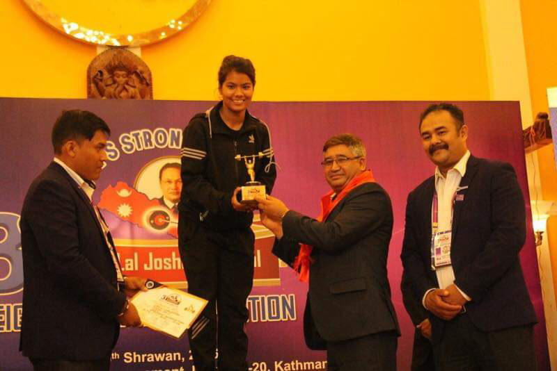 प्रकाशले क्लिनमा १३० र कुलमा २३५ केजी उचाले । तेश्रो स्थानमा रहेका एपिएफका तिलक बहादुर थापाले स्नाचमा ९० केजी, क्लिन एन्ड जर्कमा १२५ र कुल २१५ भार बहन गरे । जुनियर तर्फ बाँकेका अश्विन सोनीले स्नाचमा ६२ केजी , क्लिन एन्ड जर्कमा ६५ केजी गरि कुल १२७ केजी उचाल्दै स्वर्ण पदक जिते ।