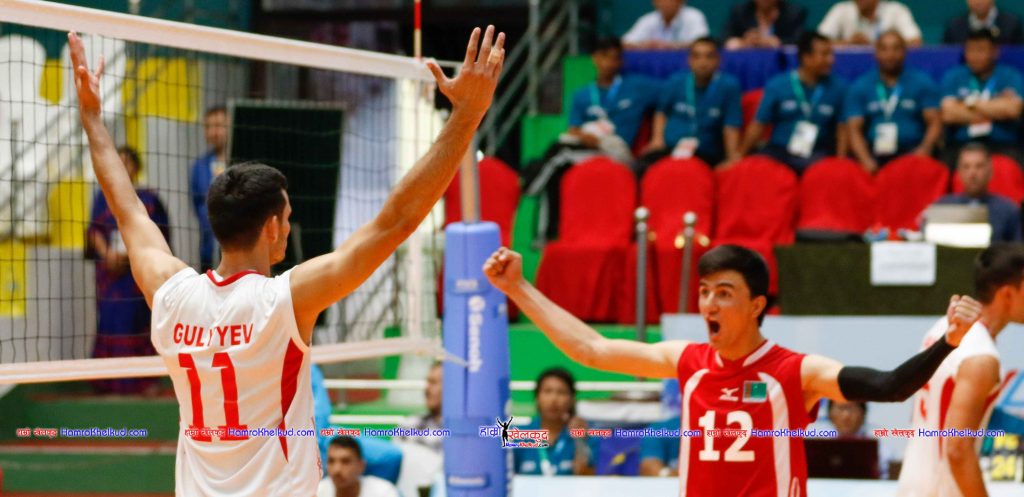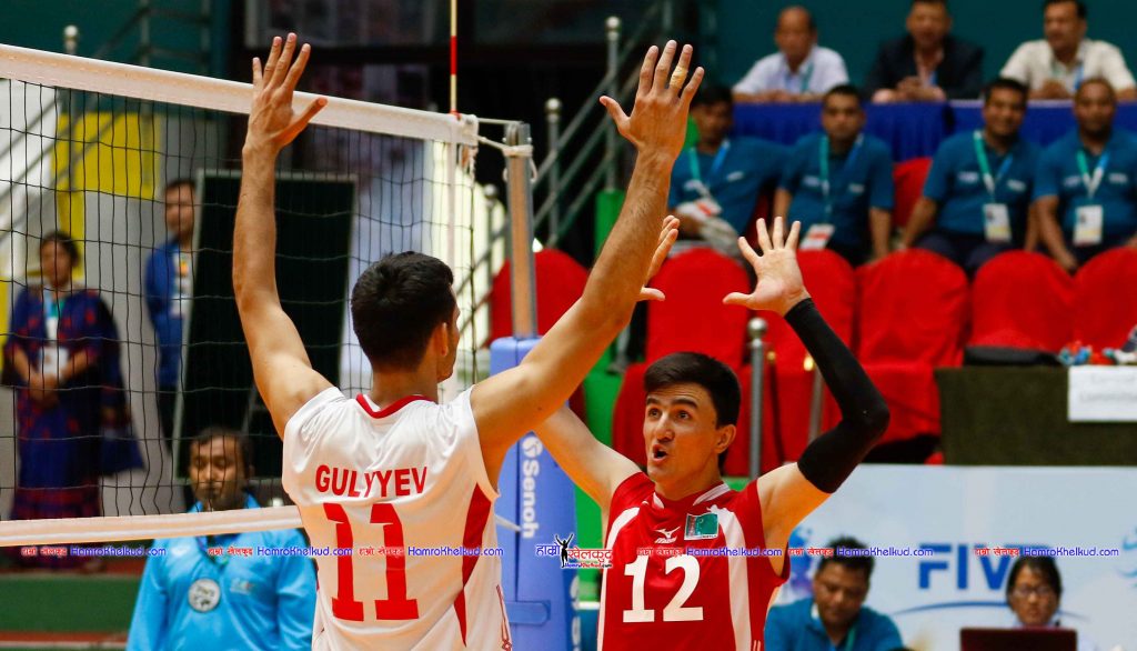 लगनखेलस्थित नेपाली सेनाको सैनिक शारीरिक तथा खेलकुद बिकास केन्द्रमा भएको पहिलो खेलमा तुर्केमिनिस्तानले अफगानिस्तानलाई ३–१ को सेटमा पराजित गर्दै विजयी सुरुवात गरेको हो ।