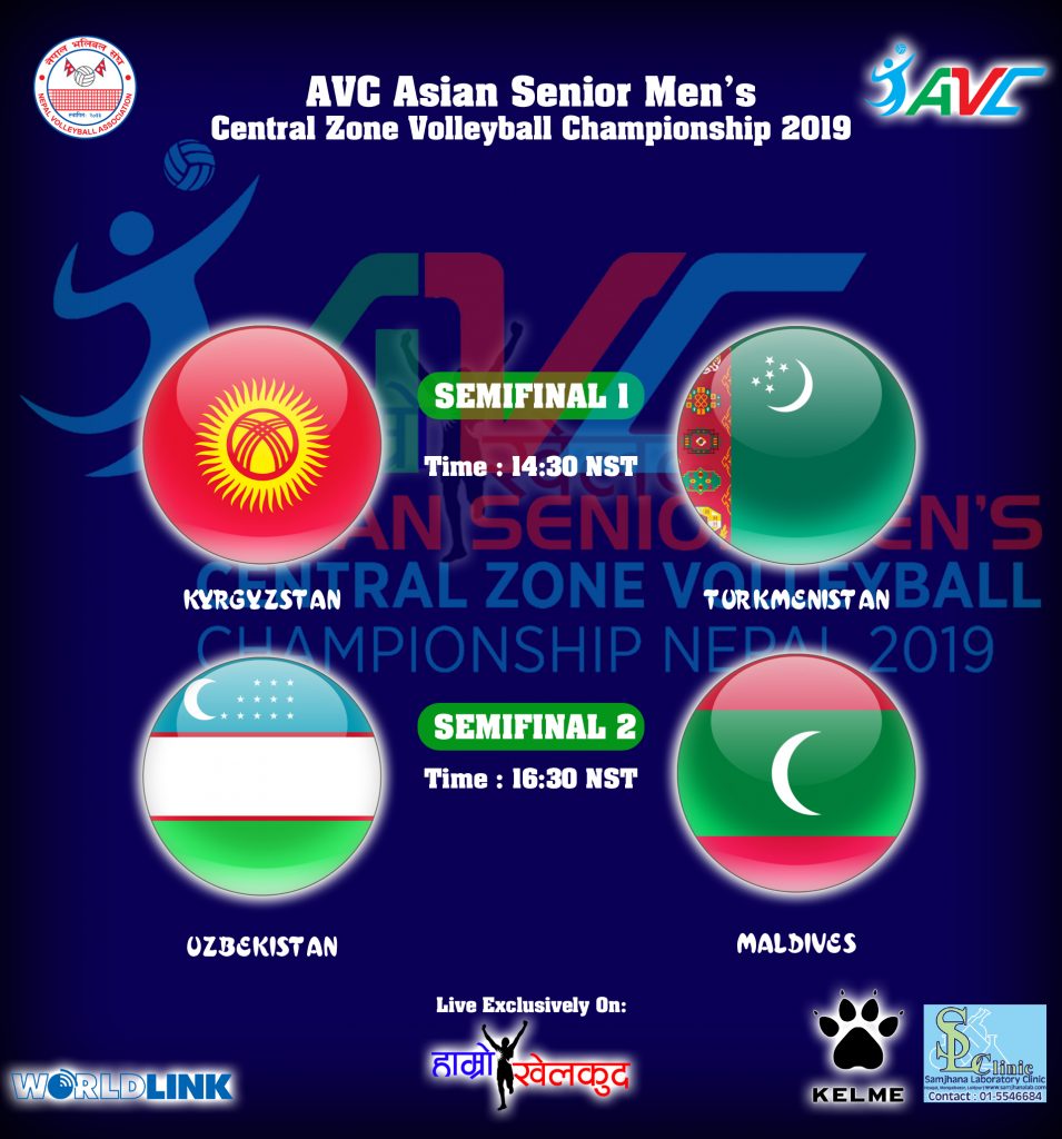 काठमाडौं (हाम्रो खेलकुद) – पाँचौ संस्करणको एभीसी एसियन सेन्ट्रल जोन सिनियर पुरुष भलिबल च्याम्पियनसिपमा आज सेमिफाइनलका दुई खेल हुँदैछ ।