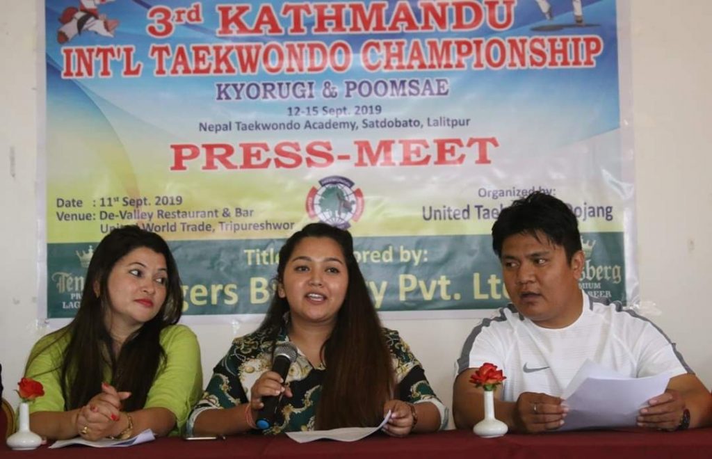 काठमाडौं (हाम्रो खेलकुद) – काठमाडौं अन्तर्राष्ट्रिय तेक्वान्दो च्याम्पियनसिपको तेस्रो संस्करण शुक्रबारदेखि सुरु हुने भएको छ । सातदोबाटोस्थित तेक्वान्दो एकेडेमीमा हुने च्याम्पियनसिपको सम्पूर्ण तयारी पूरा भएको बुधबार आयोजित पत्रकार सम्मेलनमा जानकारी दिइयो ।