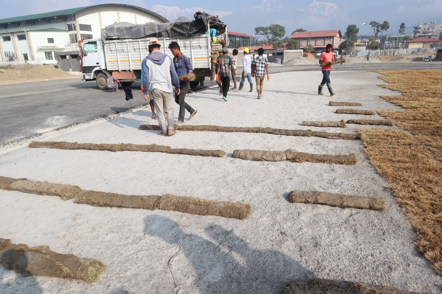 ‘हामीले करिब करिब मैदान भित्रको दुबो रोप्ने काम सकेका छौं’ उनले भने–‘ यो काम निकै महत्वको र चुनौतीपूर्ण थियो । मैदान भित्र रोपिएको दुबोको लागि भारत बाटनै निर्यात गर्ने कम्पनीका २ जना प्राविधिकहरु खटिएका छन् ।उनीहरुले१५ दिन भित्र मैदान तयार भइसक्ने जानकारी दिएको बताइएको छ ।