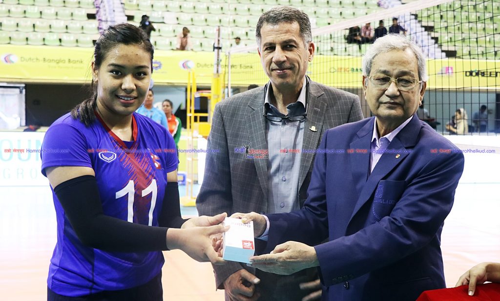 ढाका (हाम्रो खेलकुद) – नेपाली टोलीकी भरपर्दा स्पाइकर प्रतिभा माली एभीसी एसियन सिनियर महिला सेन्ट्रल जोन भलिबल च्याम्पियनसिप अन्तर्गत अफगानिस्तानविरुद्धको खेलमा प्लेयर अफ दि म्याच घोषित भएकी छिन् ।