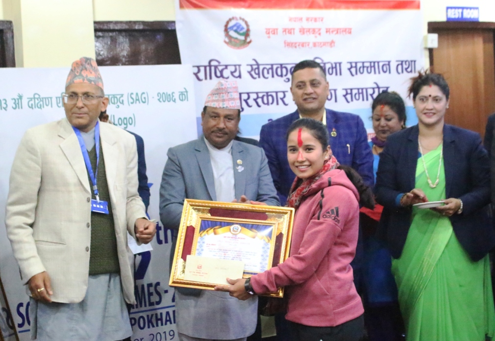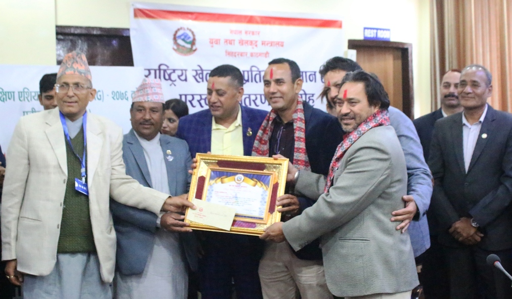राष्ट्रिय खेलकुद परिषद्मा दर्ता भएका संघहरु मध्येबाट यसपटक नेपाल ब्याडमिन्टन संघ सम्मानित भएको छ । संघकातर्फबाट अध्यक्ष रामजीबहादुर श्रेष्ठले सम्मान ग्रहण गरे । संघले १ लाख रुपैयाँ प्राप्त गरेको छ ।