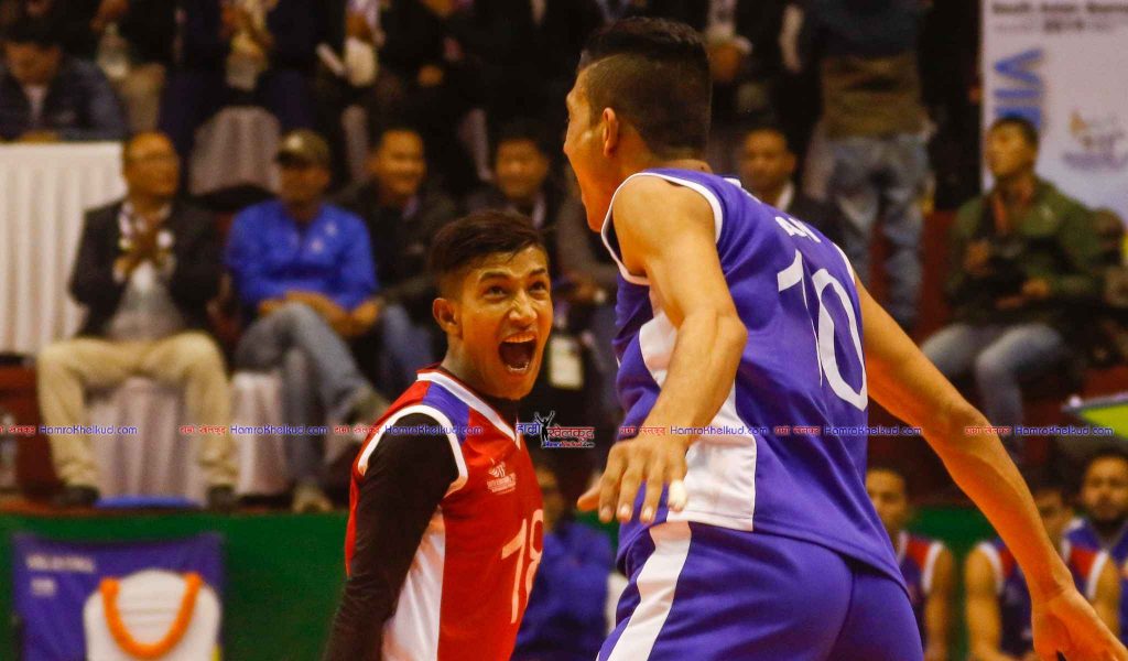 काठमाडौं (हाम्रो खेलकुद) – राष्ट्रिय खेल घोषणा भएसँगै व्यापक चर्चा कमाएको नेपालले यसपटक पुरुष भलिबलमा पनि पदकको अपेक्षा गरेको थियो । तर, नेपालको यो सम्भावना निकै झिनो बनेको छ । यही अवस्थामा नेपालले आज स्वर्णको दावेदार भारतसँग प्रतिस्पर्धा गर्दैछ । खेल त्रिपुरेश्वरस्थित राखेप कभर्डहलमा साँझ ५ बजेपछि सुरु हुनेछ ।